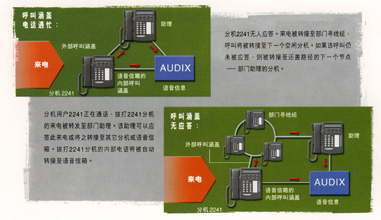 DEFINITY BCS的呼叫涵蓋功能提供了多種呼叫處理路由,以保證呼叫被合適的指定分機處理。這將有助于確保您的所有呼叫在任意時間都能由高水平的、有知識的員工處理,甚至可以將呼叫轉(zhuǎn)接到BCS系統(tǒng)之外的一個電話設(shè)備,如移動電話。