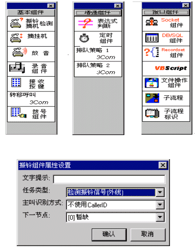 將需要重復播放的話語錄制成通用的語音文件,通過與放音模塊結合,簡單地掛放在語音樹的相應位置,就可以實現(xiàn)語音自動回復。如果需要調整語音播放的內容、次序,只需更換語音文件內容,變更放音模塊在語音樹的位置。NV-IVR內嵌文語轉換功能(TTS)。對于經(jīng)常變化、或實時生成的數(shù)據(jù)(如電話費)可以通過內置TTS自動轉化成語音,播放給電話用戶。同時NV-IVR支持語音識別技術,對無法通過電話按鍵選擇的要求,如定票選擇北京-上海,用戶可以用語音輸入(北京),配合按鍵選擇達到目的。并且NV-IVR可以應客戶需求將語音錄制到留言信箱,以備呼叫中心人員跟蹤服務。