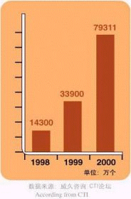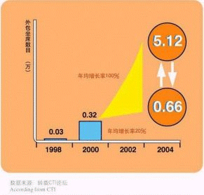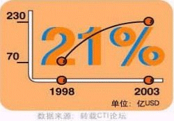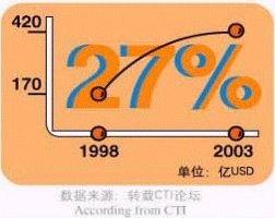 - 據CTI論壇轉引有關統(tǒng)計數字表明,全球呼叫中心外包市場1998年的產值為170億美元,2003年有望達到420億美元,并正以每年遞增27%的速度快增長;