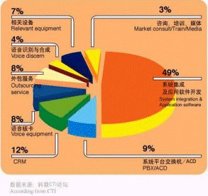 - 中國CRM市場正在快速增長,從事與呼叫中心有關產品、服務和運營方面的廠商數量約為620多家。其中,系統(tǒng)集成及應用軟件開發(fā)商的數量占有49%的比例,是呼叫中心從業(yè)廠商中最為主要的組成部分。