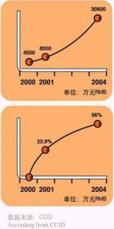 - 中國CRM市場經過一段時間的快速增長,2000年市場銷售額達到4500萬元左右。預計到2004年有望達到30600萬元。CCID根據大量調查分析,對中國CRM市場規(guī)模做出如下預測: