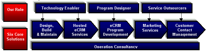 Our depth and breath of experience in contact management field allows us to manage every stage of the customer experience. In broad terms, our solutions and services fall into six categories: