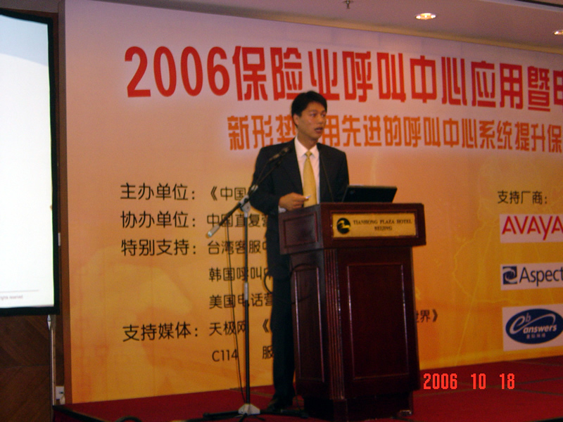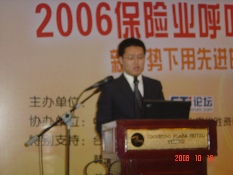 。。2006年10月18日,2006保險業(yè)呼叫中心應用暨電話營銷高峰研討會在北京天鴻科園大酒店隆重召開,以下是大會主題演講的相關(guān)圖片報道: