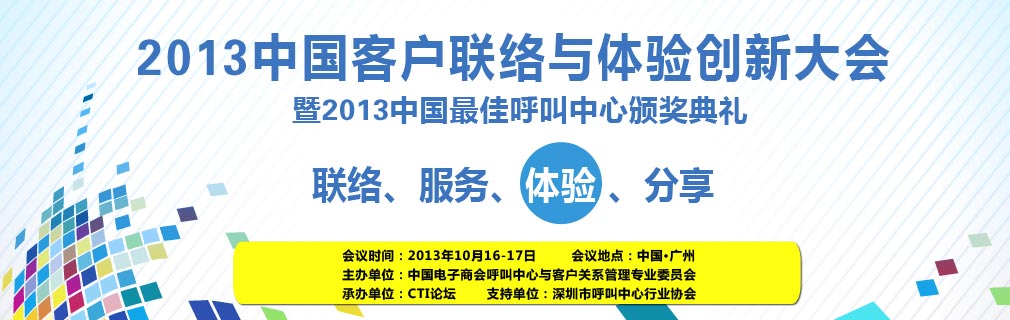 2013中國(guó)客戶聯(lián)絡(luò)與體驗(yàn)創(chuàng)新大會(huì)暨2013中國(guó)最佳呼叫中心頒獎(jiǎng)典禮 火熱報(bào)名中!