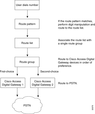 Callmanager使用Route Plan來路由所有的內部和外部電話(PSTN),route patterns,route filers,route lists,和route groups提供了一種適應性較強的網絡設計方式。下圖是其基本框圖,圖中是一個帶有外部網關的情況,本方案的情況似乎要簡單些,在route groups處 不再做過多的劃分。