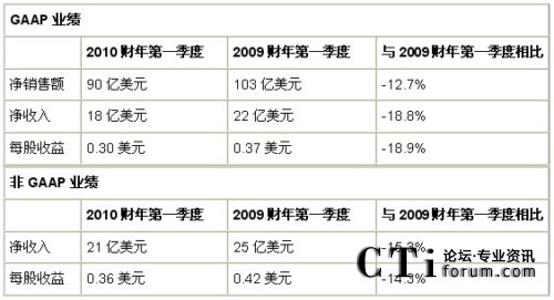 CTI論壇(ctiforum)11月5日消息:全球領(lǐng)先的致力于改進(jìn)人們聯(lián)絡(luò)、溝通和協(xié)作方式的互聯(lián)網(wǎng)解決方案提供商思科今天發(fā)布了截止到2009年10月24日的第一季度業(yè)績報(bào)告。報(bào)告顯示,第一季度凈銷售額為90億美元,根據(jù)通用會(huì)計(jì)準(zhǔn)則(GAAP)計(jì)算的凈收入為18億美元,合每股0.30美元,非GAAP凈收入為21億美元,合每股0.36美元。