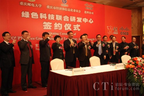 CTI論壇(ctiforum)2月3日消息(記者 潘婷):2月3日上午,思科公司與重慶郵電大學正式簽訂合作協(xié)議,共建“重慶郵電大學-思科綠色科技聯(lián)合研究實驗室”!熬G色科技聯(lián)合研究實驗室”的成立是思科履行其致力于推動中國創(chuàng)新和可持續(xù)發(fā)展承諾的重要舉措。此次合作中雙方將共同推動下一代互聯(lián)網、傳感器網絡以及綠色科技等領域的研發(fā),推進應用推廣和產業(yè)化發(fā)展,實現(xiàn)產學研一體化,幫助和支持重慶本土企業(yè)提高綠色科技創(chuàng)新的素質和能力,進而支持中國發(fā)展綠色經濟、節(jié)能減排的長期戰(zhàn)略。