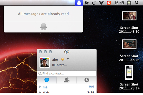 蘋果產(chǎn)品蘋果上的QQ客戶端QQ for Mac剛剛發(fā)布了最新版客戶端,主要增加了三個(gè)功能:語音聊天、通知欄消息提示、以及多文件傳輸。