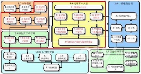 AIOpenCRM將重點支持客戶/市場層面的服務開通、服務保障的內(nèi)容,具體包含了市場營銷、銷售及訂單管理、提升客戶關系、計費帳務處理、服務開通管理、服務報障管理這六個高層流程的前三個。如下圖: