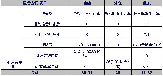 注1:自建和外包呼叫中心按目前市場平均價計算。虛擬呼叫中心按聯(lián)通標(biāo)準(zhǔn)資費計算。外包坐席按裸坐席計算。