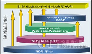 應(yīng)用軟件可以是基于硬件平臺、操作系統(tǒng)、基礎(chǔ)軟件架構(gòu)平臺(比如J2EE中間件,Bea Weblogic, IBM WebSphere等)、業(yè)務(wù)基礎(chǔ)軟件平臺這幾個(gè)不同的層次來開發(fā)實(shí)現(xiàn)的。目前大多數(shù)應(yīng)用軟件開發(fā)商都是基于操作系統(tǒng)或基礎(chǔ)軟件架構(gòu)平臺這兩個(gè)層次上來直接構(gòu)建應(yīng)用軟件,而沒有一個(gè)通用的、開放的、擴(kuò)展能力強(qiáng)的業(yè)務(wù)軟件開發(fā)平臺來支持,比較難滿足呼叫中心業(yè)務(wù)軟件在個(gè)性化、靈活、可重用方面需求。