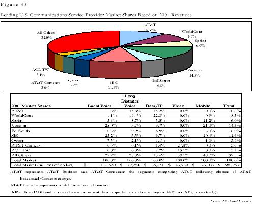 。∑髽I(yè)能力:由于沒有市話公司,AT&T缺乏對普通消費者的最后一公里的接入手段。收購地區(qū)性市話公司的可能性不大;而新建市話網(wǎng)絡成本巨大,不易成功。因此在2001-2002年,AT&T以超過1000億美元的巨資收購了3家地區(qū)性的寬帶接入提供商,希望以此建立與普通消費者的直接聯(lián)系。