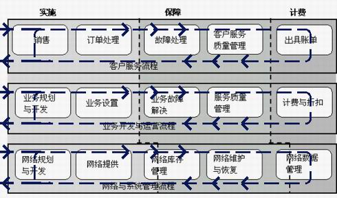 Management Forum)于1994年對包括英國電信、法國電信、GTE、大西洋貝爾和NTT等世界八大電信運營商的調(diào)查顯示,當時在這些世界最領先的電信運營商中間,服務管理的概念仍未得到廣泛認可。主要表現(xiàn)在以下兩個方面:第一、部門劃分仍是按網(wǎng)絡運營部、工程部、業(yè)務服務部、維修部等企業(yè)縱向管理的需求來劃分的;第二、業(yè)務提供仍是傳統(tǒng)制造業(yè)以產(chǎn)定銷的思維習慣,根據(jù)技術能力提供客戶服務,而不是根據(jù)客戶需求來決定所提供的服務。