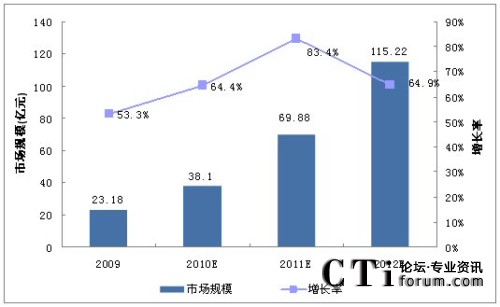 圖:2009-2012中國移動(dòng)位置服務(wù)市場(chǎng)規(guī)模預(yù)測(cè)(億元)