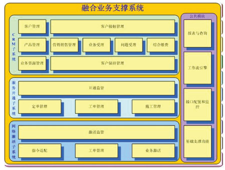 隨著電信運營商重組的深化和全業(yè)務運營的逐步開展,對固網(wǎng)、移動融合業(yè)務運營的支撐是各電信運營商運營支撐系統(tǒng)面臨的現(xiàn)實問題與挑戰(zhàn),如何統(tǒng)一管理客戶數(shù)據(jù)、支持全面的營銷管理、受理固網(wǎng)移動捆綁業(yè)務、實現(xiàn)固網(wǎng)移動業(yè)務的快速開通等,都是新的運營支撐系統(tǒng)必須解決的問題。大唐電信旗下大唐軟件基于公司發(fā)展10多年的全面運營支撐產(chǎn)品體系,深入分析固定、移動網(wǎng)融合的全業(yè)務支撐需求,整合公司已有產(chǎn)品,自主設計、研發(fā)了新一代滿足電信運營商全業(yè)務運營需要的融合業(yè)務支撐系統(tǒng)產(chǎn)品。