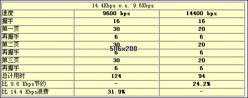東進(jìn)傳真卡TC-04FM采用RockWell的33.6K的芯片,提供的傳真速率是 14.4Kbps,相對(duì)于 9.6Kbps,可以節(jié)約24.2%的時(shí)間(按3頁傳真計(jì)算)。各項(xiàng)操作的占用時(shí)間比較表如下: