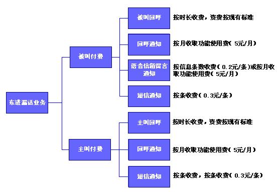 東進(jìn)固話(huà)漏話(huà)業(yè)務(wù)提供靈活的計(jì)費(fèi)方式,可分別對(duì)被叫和主叫進(jìn)行收費(fèi)。