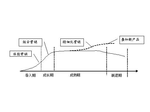 漏話(huà)業(yè)務(wù)是對(duì)現(xiàn)有基礎(chǔ)電信業(yè)務(wù)的延伸和補(bǔ)充,是建立在基礎(chǔ)通話(huà)服務(wù)基礎(chǔ)上的功能型增值業(yè)務(wù),在業(yè)務(wù)推廣中,應(yīng)根據(jù)業(yè)務(wù)的不同的發(fā)展階段,分別在業(yè)務(wù)的導(dǎo)入期、成長(zhǎng)期、發(fā)展期和衰退期采取不同的營(yíng)銷(xiāo)手段和措施,如下圖所示。