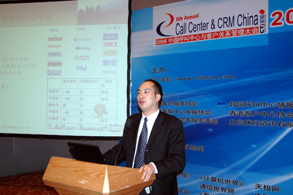 2006年4月3日至5日,2006中國呼叫中心與客戶關(guān)系管理大會在北京國際會議中心隆重召開,以下是星際網(wǎng)絡(luò)的執(zhí)行副總裁柳國東專題演講實錄: 第一個特點就是我們提出來了一個全程一體化的服務(wù)解決方案。整個解決方案有三個層面,第一個層面就是我們要和企業(yè)一起建設(shè)一個適用的呼叫平臺,F(xiàn)在我們企業(yè)在選擇建立呼叫中心的時候也有一些困惑,比如說我要建設(shè)一個30個坐席的呼叫中心,可能很多集成商的方案和報價從20萬到100萬都有,現(xiàn)在各個呼叫中心的平臺都已經(jīng)很成熟了,但是作為企業(yè)來講,要選擇一個適合自己的呼叫中心,而不是選擇昂貴的或者是低廉的。我們建立呼叫中心以后可以進行高效率的電話接聽和服務(wù)人員的管理平臺。但是并不能解決我們服務(wù)的流程管理、流程監(jiān)控。咨詢的結(jié)果我們并沒有因為建立呼叫中心就把問題解決了。所以我們星際網(wǎng)絡(luò)提出了服務(wù)應(yīng)用的概念。一般來說現(xiàn)有的企業(yè)大概的服務(wù)方式有兩種,那么星際網(wǎng)絡(luò)根據(jù)這兩種不同的服務(wù)模式,我們也提供了相應(yīng)的服務(wù)應(yīng)用。我們希望通過一個前臺高效的服務(wù)中心平臺,和后臺一個豐富的系統(tǒng)應(yīng)用,真正幫助企業(yè)解決完成的客戶流程。