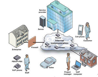 企業(yè)網(wǎng)絡(luò)融合是在互聯(lián)網(wǎng), 固定網(wǎng), 移動(dòng)網(wǎng)三網(wǎng)合一的基礎(chǔ)上, 由企業(yè)服務(wù)提供商提供的可以控制和管理的融合通信平臺(tái), 將語音、視頻、圖片、文件傳送等功能統(tǒng)一實(shí)現(xiàn)。企業(yè)員工可在不同地點(diǎn), 通過不同終端接入此平臺(tái),內(nèi)部語音通信可以直接通過企業(yè)內(nèi)部IP網(wǎng)絡(luò)進(jìn)行,國內(nèi)外分支機(jī)構(gòu)間語音通信,只需要支付IP網(wǎng)絡(luò)接入的費(fèi)用,不但提供了靈活高效的通信手段, 也節(jié)省了原本高額的通信費(fèi)用。