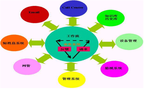 工行北方數(shù)據(jù)中心HelpDesk系統(tǒng)與工行北方數(shù)據(jù)中心的設(shè)備管理系統(tǒng)、網(wǎng)管系統(tǒng)和監(jiān)視系統(tǒng)整合,使HelpDesk系統(tǒng)能夠?yàn)榧夹g(shù)支持人員提供更多的信息。通過與網(wǎng)管集成,可以利用HelpDesk系統(tǒng)發(fā)布網(wǎng)管采集的異常信息,同時(shí)這些信息可以為技術(shù)支持人員的工作提供參考。設(shè)備管理信息不但可以供技術(shù)支持人員參考,還可以使當(dāng)前的工作與設(shè)備相關(guān)。這樣便于監(jiān)督、審查,同時(shí)也使設(shè)備維護(hù)的歷史信息可以供日后參考。監(jiān)視系統(tǒng)提供報(bào)警和大屏幕顯示。大屏幕顯示系統(tǒng)可以把取自系統(tǒng)內(nèi)的關(guān)鍵數(shù)據(jù)顯示到幕墻上。