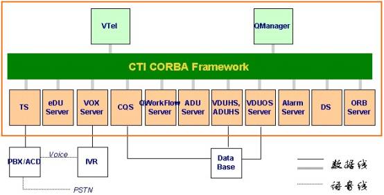 市場(chǎng)上有很多CTI產(chǎn)品,如AVAYA的CVCT、Dialogic(已被Intel收購(gòu))等。這些CTI僅相當(dāng)于圖3中的“TS”(電話(huà)服務(wù)器),由此可見(jiàn)QCTI具有明顯的比較優(yōu)勢(shì):