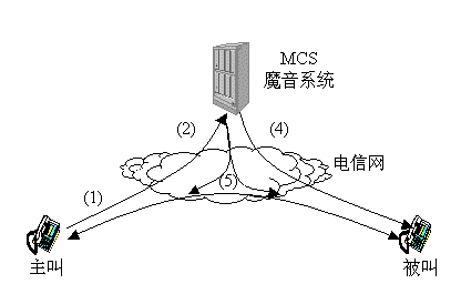 業(yè)務(wù)觸發(fā)后,局端交換機將用戶呼叫,轉(zhuǎn)接到魔話系統(tǒng),由魔話系統(tǒng)通過DTMF交互完成業(yè)務(wù)交換,呼叫被叫用戶的功能。