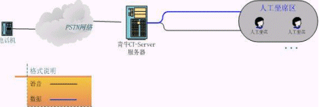 根據(jù)實(shí)際呼入量和人員規(guī)模,客服中心一般只能夠使用模擬電話接入加上語音板卡的方式。利用青牛軟件提供的CT-Server方案就可以滿足這一需求,本方案不僅提供了小容量的PBX功能,而且提供了CTI控制和自動(dòng)語音處理功能;贑T-Server可以方便的開發(fā)出適合自己業(yè)務(wù)的坐席應(yīng)用軟件和IVR流程,開發(fā)人員只需要了解簡單的呼叫流程和業(yè)務(wù)流程,無需熟悉語音板卡的硬件開發(fā)接口,也不需要關(guān)心系統(tǒng)采用的是NMS的語音板卡還是Dialogic的語音板卡。