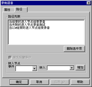 有兩種方式,一種是通過ZingServ的錄制語音模塊來靈活設(shè)置錄音的起點、終點和錄音長度,如客戶投訴和客戶建議大都通過這種方式來,這時錄音文件的名稱可以使用自定義變量,便于在二次開發(fā)中使用。