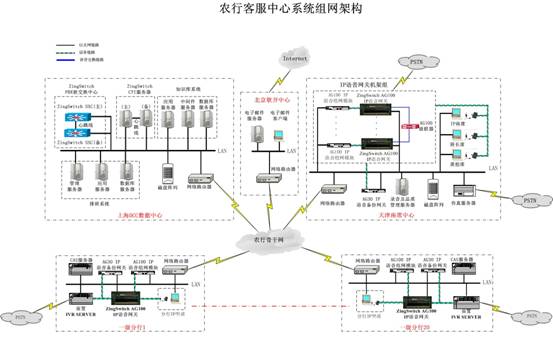 中國(guó)農(nóng)業(yè)銀行一體化客戶(hù)服務(wù)中心,包括“一個(gè)系統(tǒng)、兩個(gè)中心、36個(gè)分行節(jié)點(diǎn)”。一個(gè)系統(tǒng)是指全行的客戶(hù)服務(wù)中心基于同一套應(yīng)用系統(tǒng);兩個(gè)中心是指南、北兩個(gè)集中的人工座席服務(wù)中心;36個(gè)分行節(jié)點(diǎn)是指各分行的語(yǔ)音接入、自助服務(wù)應(yīng)用系統(tǒng)以及遠(yuǎn)端座席。