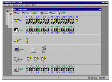VoiceMaster的Monitor Workstation是一個(gè)為提供即時(shí)系統(tǒng)功能和動態(tài)信息而設(shè)計(jì)的通用工具程序。監(jiān)控工作站(Monitor Workstation)顯示系統(tǒng)組件和系統(tǒng)操作特性、通訊線路、主控計(jì)算機(jī)的連接情況、不間斷電源(UPS)及磁盤容量等各自實(shí)時(shí)狀態(tài)的圖形簡報(bào)。當(dāng)有問題或出錯(cuò)時(shí)產(chǎn)生報(bào)警及警告信息來通知系統(tǒng)管理員。