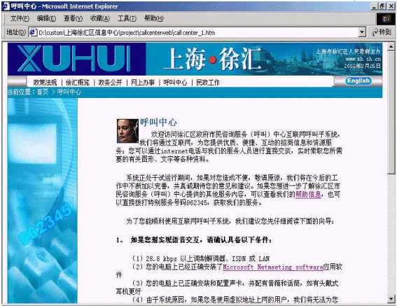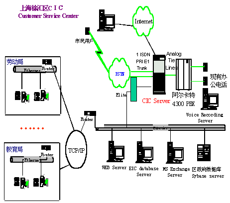 上海市徐匯區(qū)市民咨詢(呼叫)中心的第一期工程包括語音自動應(yīng)答IVR、按需傳真Fax on Demand、語音郵件Voice Mail、網(wǎng)頁互動Web Interaction、座席屏幕彈出Agent Screen Pop、報表以及語音記錄等功能。該中心具有以下特點,很好地滿足了徐匯區(qū)政府的要求。