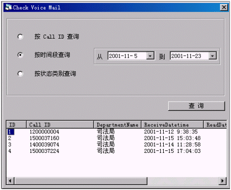 用戶電話進入中心,并轉(zhuǎn)至坐席,此時如果坐席處于忙或非工作時間,中心會自動提示用戶留言,留言后坐席在一定的時間內(nèi)給予回復(fù)處理,并在處理的同時對所有的語音留言Voice Mail做狀態(tài)分類統(tǒng)計。中心還對用戶留言的處理過程進行跟蹤,以便防止大量語音留言不能得到及時處理,影響中心的服務(wù)質(zhì)量。