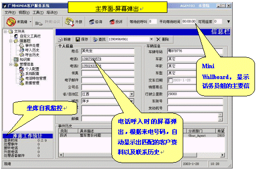 當(dāng)客戶的電話被轉(zhuǎn)到客戶服務(wù)人員時(shí),客戶的所有相關(guān)信息將自動(dòng)彈出顯示在服務(wù)人員的電腦屏幕上,包括歷史接觸記錄信息等,這樣就能提供最具有針對(duì)性和高效率的服務(wù)。如果是新客戶,那么服務(wù)人員將即時(shí)錄入信息,動(dòng)態(tài)擴(kuò)充數(shù)據(jù)庫(kù)。