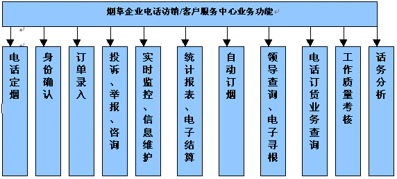 隨著國內(nèi)煙草專賣體制市場化進程的不斷推進,在煙草全行業(yè)建立以"電話訂貨、網(wǎng)上配貨、電子結(jié)算、現(xiàn)代物流"為基本特征的現(xiàn)代流通體制已經(jīng)成為必然的選擇,實現(xiàn)煙草專賣體制下舊的和落后的營銷體制向現(xiàn)代營銷體制的轉(zhuǎn)變。煙草企業(yè)建立電話訪銷/客戶服務系統(tǒng)的目標是最大程度地提高客戶的滿意度,其核心是實現(xiàn)高水平的建設水平,提高企業(yè)對市場的控制力,最終保證企業(yè)擁有持續(xù)的競爭力和良好的贏利。