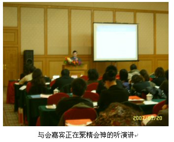 會(huì)議最后舉行了幸運(yùn)抽獎(jiǎng)活動(dòng),來(lái)自聯(lián)想集團(tuán)的劉先生、華夏銀行的劉小姐和安邦財(cái)險(xiǎn)的王小姐獲得了三等獎(jiǎng),來(lái)自中國(guó)人保財(cái)險(xiǎn)的文女士和方正科技的王先生獲得了二等獎(jiǎng),會(huì)議的一等獎(jiǎng)——摩托羅拉V3手機(jī)被快樂(lè)E行公司的孫小姐幸運(yùn)獲得。