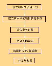 實施CallCenter/CRM項目,涉及到金融業(yè)的技術、業(yè)務、管理等多個部門和眾多產品和系統(tǒng),實施過程復雜,因此,在方案的選擇、合作伙伴和集成商的選擇等方面非常重要。特別作為一種較新的技術的推廣,集成商的管理理念、對項目的風險控制和項目質量的管理,是影響項目能不能成功的幾個關鍵因素。