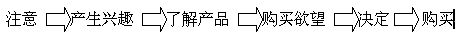 另外在其它的銷售渠道上,如電視、廣播、報紙等,他們對市場目標的準確度都是不高的,因為這樣的原因,也無法對目標市場作掌控和測試,雖然他們可以很快速的擴展市場,對市場產(chǎn)生很大的響應(yīng)力,但如果沒有很好的市場營銷與品牌整體性和長期性規(guī)劃,也很快的會變成曇花一現(xiàn),歷史中的記憶,這些渠道的成本也是最高的,所以不是所有的企業(yè)都能一體適用的,尤其是中小型企業(yè)是無法長期負擔的。誠如在之前的文章里面分析所講的,最好的銷售效果是一拉一推的力量,用多媒體感官性及理性的獲取消費者的注意力,再配合快速效能的主動銷售,往往能將營銷的效果提升到最高的層面。將到這兒,就不得不順帶提到消費者購買的行為模式。我們將消費者對購買的心理和行為分為幾個階段: