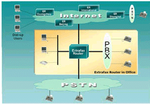對于普通的傳真機,ExtraFax Router是更合算的選擇。它不僅不需要額外的網關設計,而且它還可以自動計算長途計費單。最重要的是它可以自動尋找最佳路徑 (即最節(jié)省的方式) 通過Internet/Intranet發(fā)送傳真,同時ExtraFax Router基于DID/DTMF/CSID/PORT/Channel的自動分發(fā)到個人的傳真信箱也降低了人工管理的費用并能實現傳真的安全性。