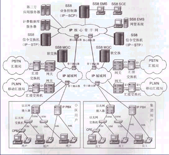 SS8是一個能夠提供IP網(wǎng)上端對端的IP電話業(yè)務的軟硬件系統(tǒng)產(chǎn)品,一套滿配置的SS8系統(tǒng)可以構建橫跨全球范圍數(shù)千萬用戶的IP語音通信網(wǎng)。