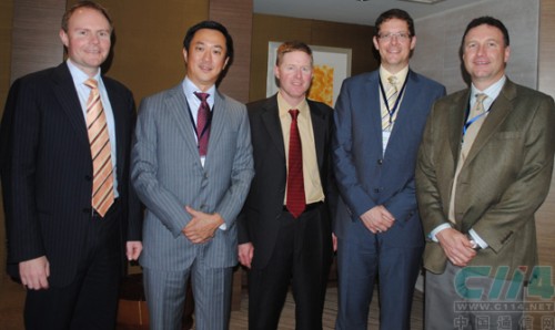從左到右依次為:亞太區(qū)高級(jí)副總裁Jason Stirling、大中華區(qū)總經(jīng)理鄭裕慶、專(zhuān)業(yè)服務(wù)部副總裁Brett Phaneuf、企業(yè)產(chǎn)品副總裁Daniel S Fauldner、亞太區(qū)銷(xiāo)售工程師高級(jí)主管Stuart Sharpe
