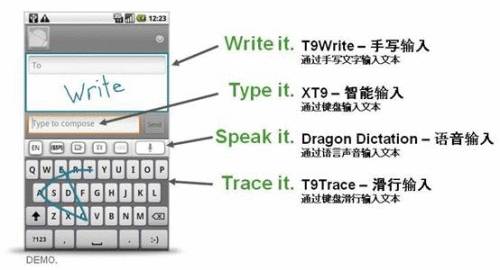 1.T9 Trace是Nuance T9產品組合中的一員,與T9、XT9、T9 Write等輸入技術共同為用戶打造多模式輸入體驗,使用戶擁有更多選擇,可以按照個人喜好輕松組合更快捷的輸入方法。這是市面上類似產品,例如Swype,僅能依靠單一的滑行輸入所不能比擬的。