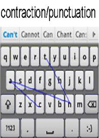 3. 在屏幕上不間斷的滑行輸入英文cant,自動生成can’t.(自動標點生成)