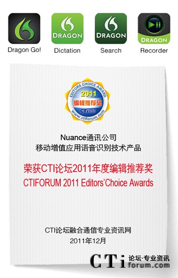 Nuance榮獲“2011年度CTI論壇編輯推薦獎”