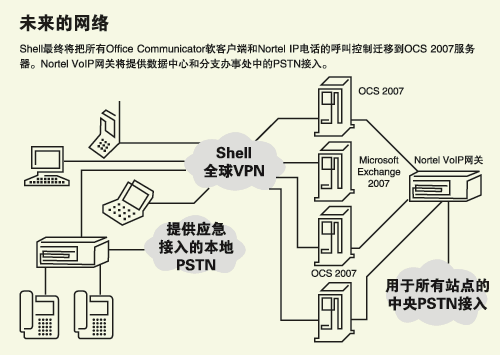 這家石油巨頭的核心VoIP網(wǎng)絡(luò)最終將在Microsoft OCS上完成全面的系統(tǒng)整合,并使用Nortel IP電話技術(shù)作為連接遺留電話與VoIP的橋梁。