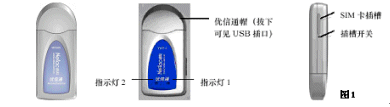 將優(yōu)信通與電腦的USB接口相連接,如果連接正常則指示燈1將會處于常亮狀態(tài)。此時指示燈2會頻繁地閃爍,約為每1秒鐘閃一下,這表示收發(fā)模塊正在尋找網(wǎng)絡(luò),找到網(wǎng)絡(luò)后,指示燈2將改為約每3秒閃一下。