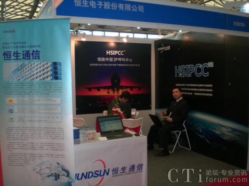 CTI論壇(ctiforum)11月20日消息(記者 張塵):近日,2009中國(guó)國(guó)際工業(yè)博覽會(huì)在上海新國(guó)際博覽中心隆重召開(kāi)。恒生通信攜其自主知識(shí)產(chǎn)權(quán)的HSIPCC(Hundsun IP Callcenter,恒生IP呼叫中心)核心平臺(tái)亮相本屆工博會(huì)。受到了與會(huì)各界代表的廣泛關(guān)注。