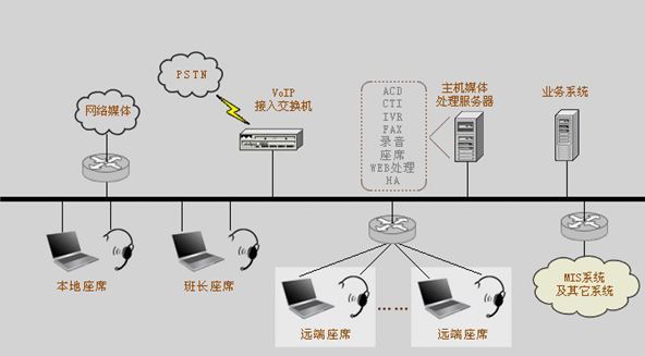 我們可以非常明確的一點是:采用分布式座席的技術(shù),使得遠(yuǎn)端座席與中心座席除了地域上的差異,其它部分完全相同。可以說只要網(wǎng)絡(luò)無極限,座席分布就是無極限的。