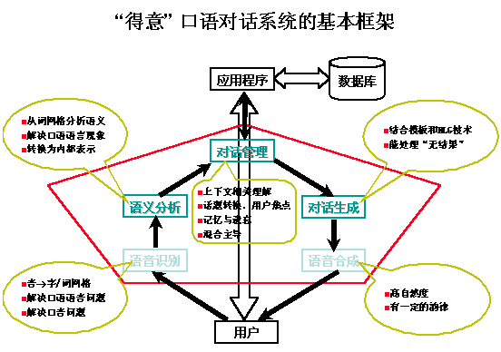 與其他中文自然語言理解系統(tǒng)不同,得意的系統(tǒng)支持的是靈活隨意的口語對話,并能根據(jù)對語義的真正理解,采用先進的自然語言生成技術(shù),產(chǎn)生自然的應(yīng)答語句。一個口語對話系統(tǒng)包括的主要部分有:語義分析器、對話管理器、應(yīng)答生成器等。得意公司在這幾個方面都做得很好,軟件開發(fā)工具包和開發(fā)環(huán)境完備,對技術(shù)開發(fā)人員要求不高,利用該開發(fā)工具,可以大大縮短開發(fā)周期,快速并有效地開發(fā)出實用的口語對話系統(tǒng)。國內(nèi)大部分的技術(shù)開發(fā)商和SP都能輕松應(yīng)用此開發(fā)工具開發(fā)自己的智能服務(wù)系統(tǒng),有關(guān)的修改、補充和維護工作也很方便,一般通過修改配置文件就可以達到對系統(tǒng)進行升級的目的。