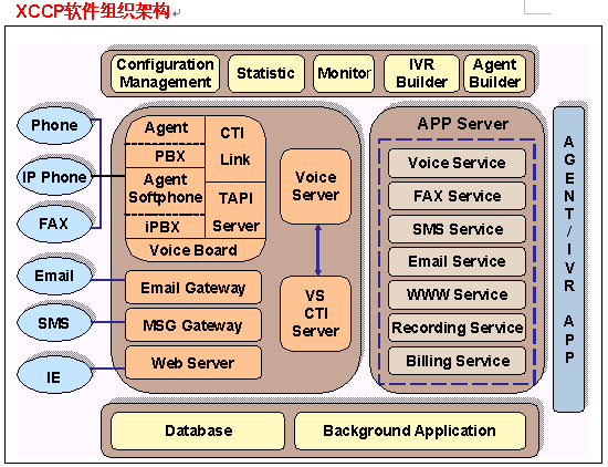 是XCCP的核心組件之一,由聲軟科技的拳頭產(chǎn)品VoiceServer擔(dān)當(dāng)重任,實現(xiàn)呼叫中心系統(tǒng)中自動語音所有功能,集語音、傳真、TTS、短信和語音識別技術(shù)為一體,為客戶建設(shè)多媒體呼叫中心提供技術(shù)基礎(chǔ)。